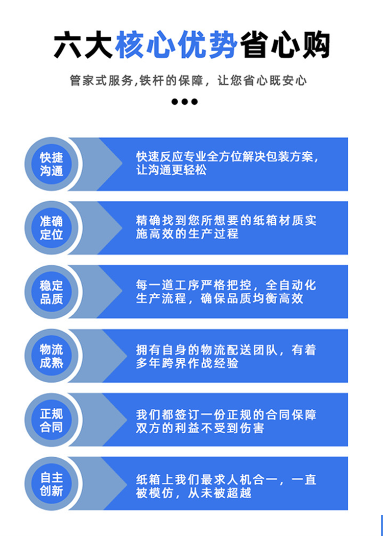 青岛纸箱定制在市场上越来越受到了企业采购商的欢迎。相对于普通的标准纸箱,青岛纸箱定制具有明显的优点,如定制集团单位,高效率的生产周期,高质量的材料和生产工艺,以及完善的售后服务等,都能够为企业提供高效、安全、方便、经济和贴心的一站式服务。