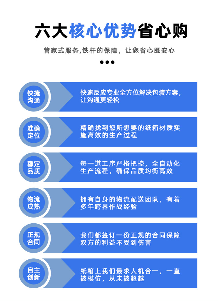 4.重型纸箱还要成本低,重量轻,不污染环境等优点,在现在很多行业中广泛的使用,效果非常的可靠,是大家所认可的一类纸箱产品。