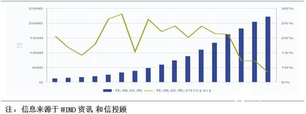 图3:2000年以来国内化妆品零售情况