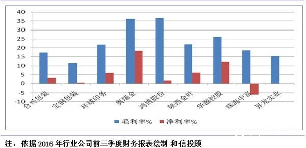 对A股相关公司进行观察发现,包装印刷行业虽然上市公司数量较少,但目前所体现的亏损类公司仅为2家,上市行业亏损面仅为6%,远远低于煤炭、钢铁等传统行业,但业绩分化却非常明显。这一方面表明近年包装印刷行业总体发展的现状,同时,也显示了行业竞争所带来的经营差异化体现。